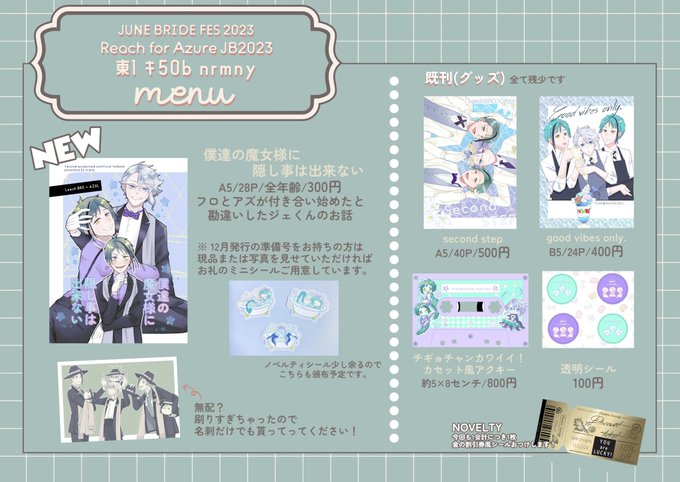 6/25のお品書きです❣️ 新刊サンプル↓ pixiv.net/artworks/10890… 新刊と名刺以外は全て残少です。 トリオキニ18日まで(どなたでも🙆♀️) triokini.com/circle/item/li…
