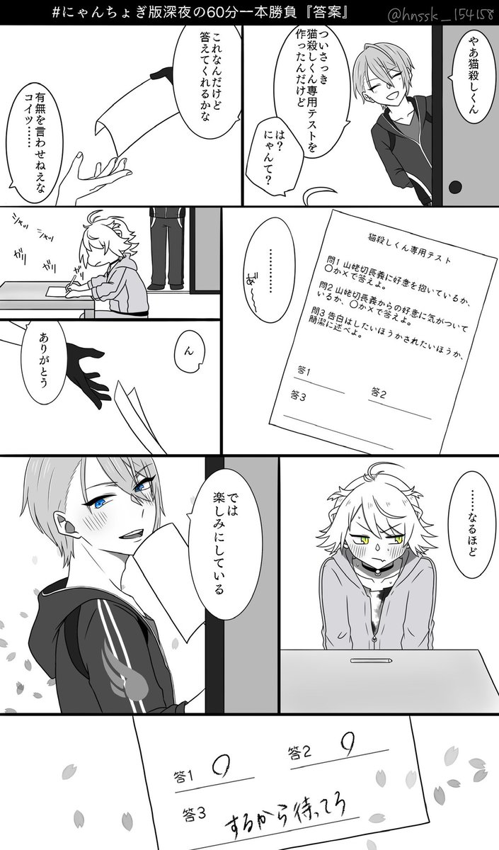 #にゃんちょぎ版深夜の60分一本勝負 お題『真意』『駄々をこねる』をお借りしました! ペン入れ色塗りセリフ入れで1時間越えです……😭毎回オーバーしてすみません……🙇♀️💦 お付き合いしている🐈にゃんちょぎ🗻です!
