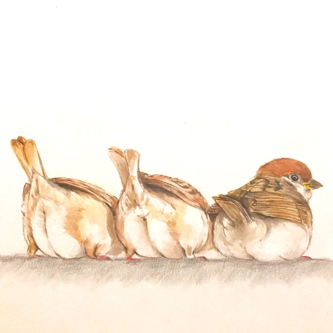 すずめのおしり好き🐥 #過去絵 #スズメ #すずめ #小鳥 #アナログ画 #水彩画 #水彩イラスト #動物イラスト #ゆるいイラスト