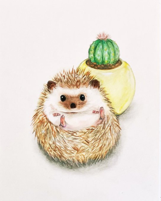 7 128 丸くてトゲトゲのミニサボテンに共通点を感じているハリネズミ🦔🌵 #ハリネズミ #はりねずみ #ミニサボテン #水彩画 #水彩イラスト #アナログイラスト #ゆるいイラスト #動物イラスト 22/09/19 13:19