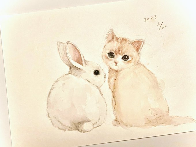 3 55 卯年の猫の日🐰🫶🐱 #猫の日 #猫の日2023 #水彩画 23/02/22 21:38