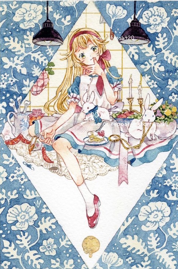 【展示のお知らせ】 企画展『 #不思議の国の主人公 』 ◆2022.5/11(水)〜5/16(月) 12:00〜20:00(最終日18:00) ◆ぎゃらりぃあと様(@Ato10Gallery ) 原画5点と他ドローイング・グッズ販売で参加いたします。 1階の『アリスのいないお茶会』と一緒にアリスの世界をお楽しみください🐇🕰