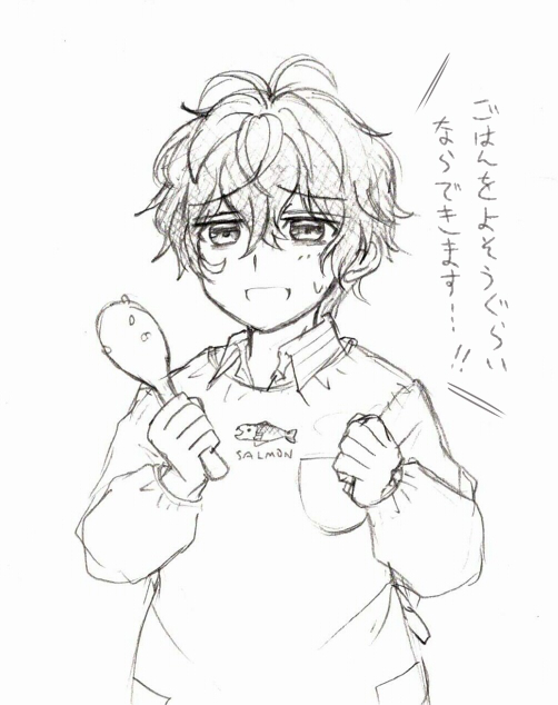 あとちょっと前にフォロワさんが「割烹着の独歩ちんが見たい」と仰っていたのを勝手に描きました 何も考えないとこの絵柄です あんまり割烹着の良さを出せていなくてすみません