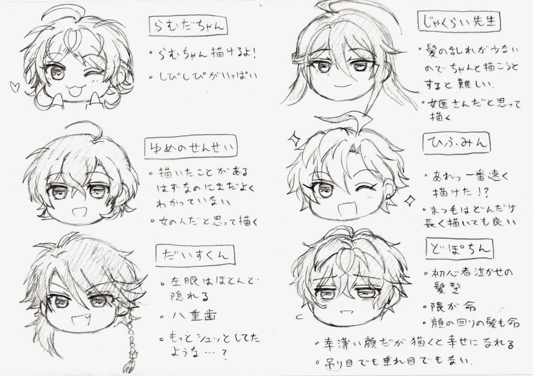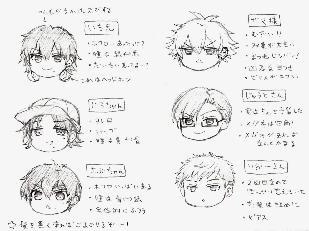 今日訳あって業務中暇が生じたので一人ヒプマイ見ないで描けるかな選手権を開催してました 見づらくてすみません キャラの5割が初描きです
