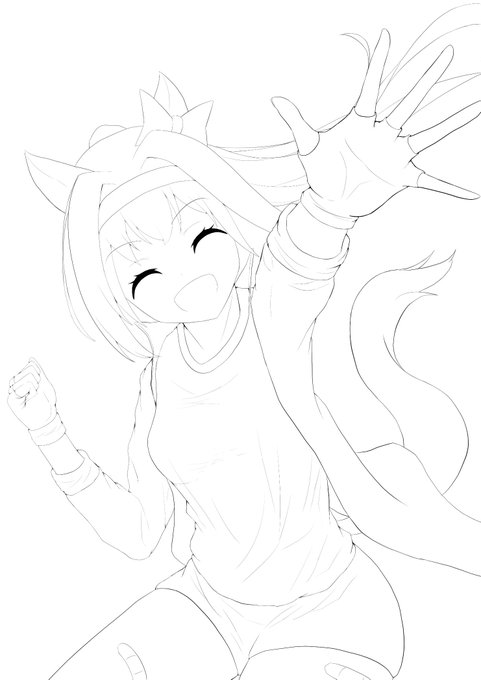 ウララちゃん線画 笑顔が眩しい #イラスト