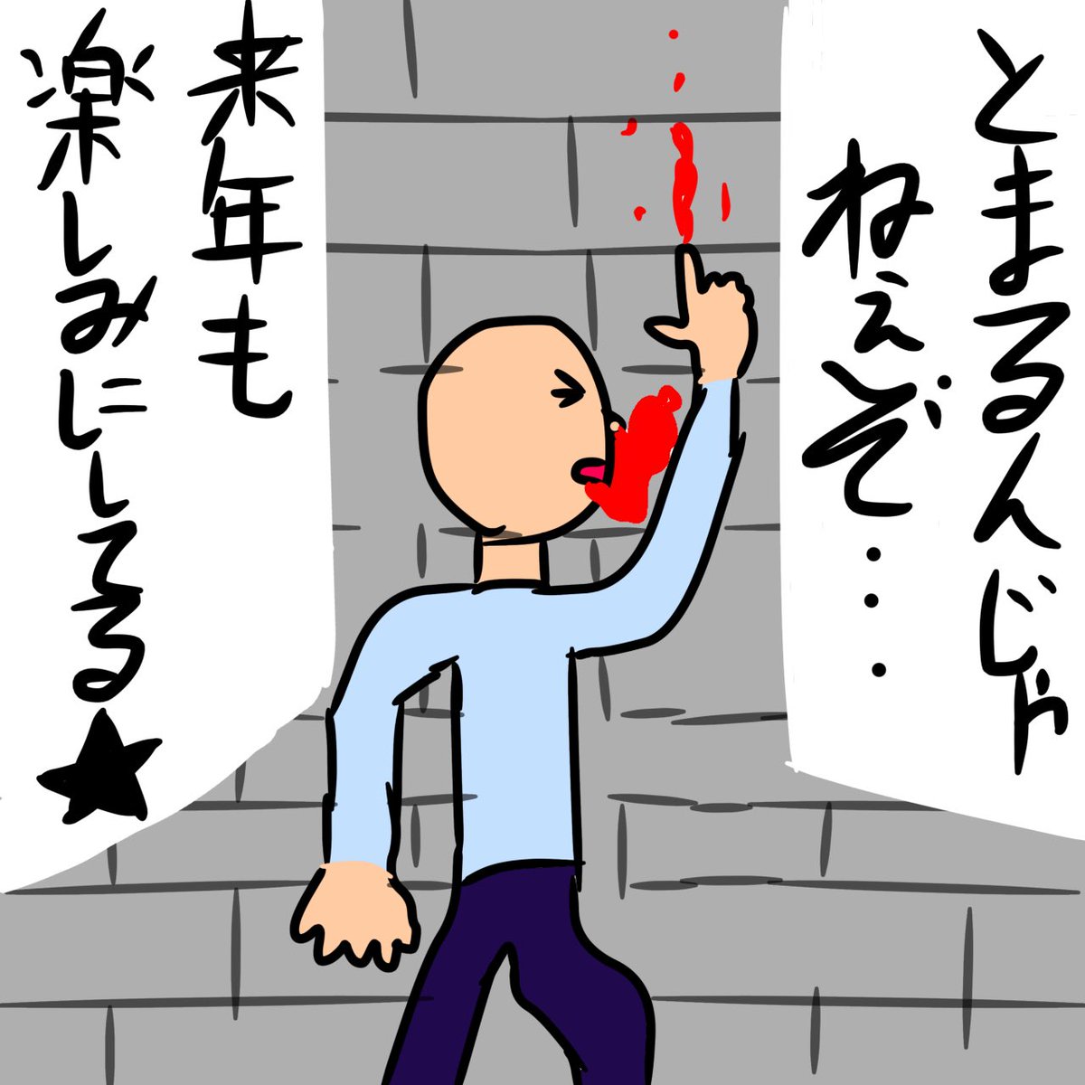 #ほしまちぎゃらりー 雑絵シリーズ 『完全初見のBIOHAZARD7 RESIDENT EVIL #2』 # 1で言い放ったフラグを 回収した星街の図 (字が汚ねえ… 指で描いてるから許して)