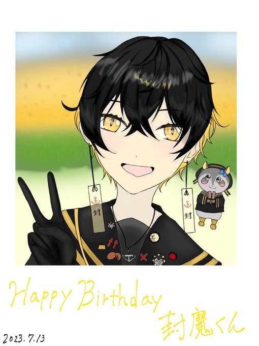 改めて、お誕生日おめでとう🎉🎉🦝 #夜十神封魔生誕祭202 #封魔絵