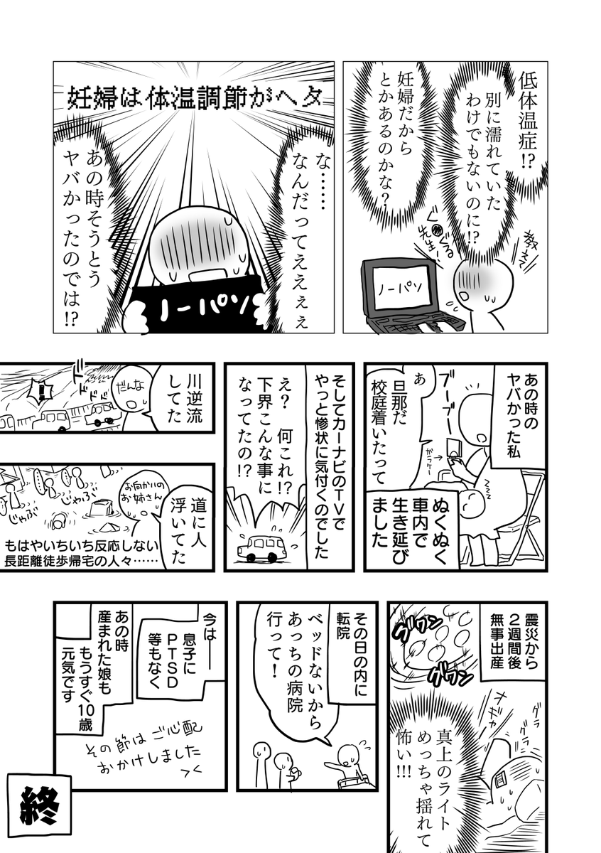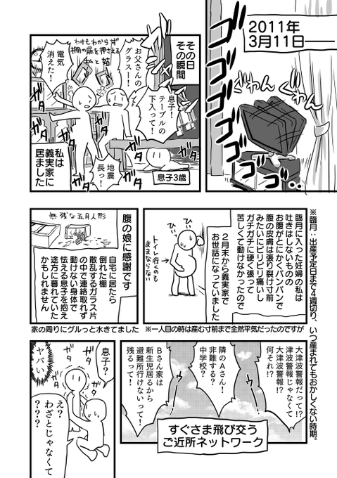 #2011年3月11日14時46分あなたはどこで何をしていましたか 宮城県多賀城市に居ました。 臨月の妊婦でした。 10年なので、こんな感じでしたという漫画描いてみました。 重い内容ではないので大丈夫です。