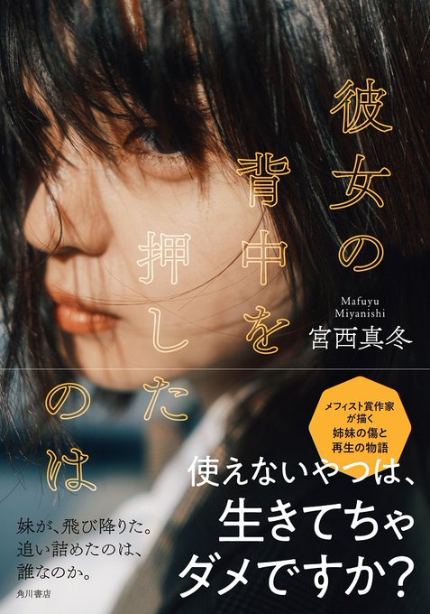 【お知らせ】 2/18(金)から発売開始されているメフィスト賞作家・宮西真冬さんの最新刊『彼女の背中を押したのは』の表紙に起用していただいております。 お写真はコハラタケルさんです📷 是非書店にてお買い求めくださいね☀︎ twitter.com/kadokawashosek…
