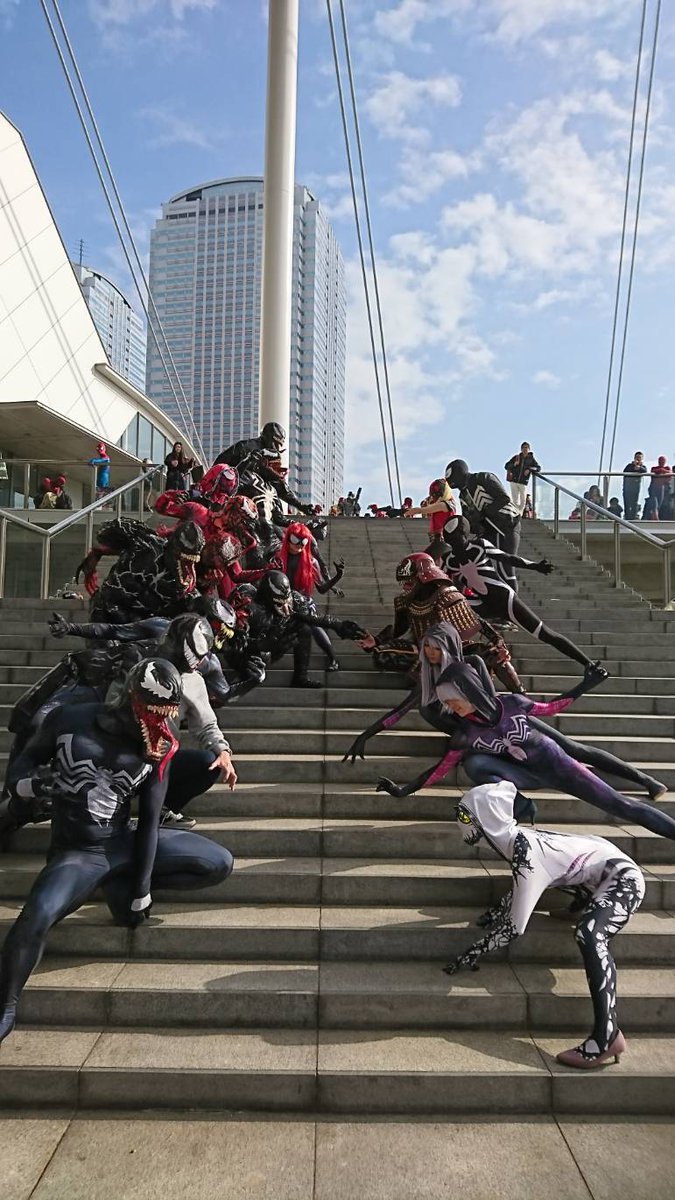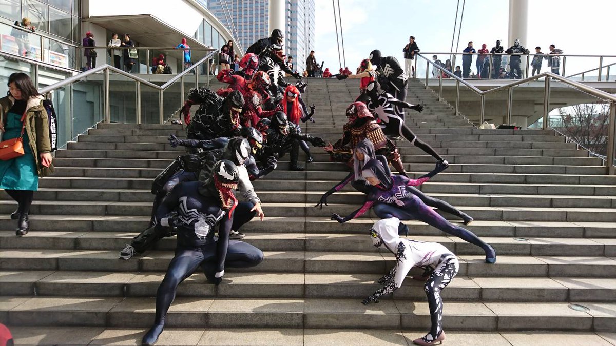18 37 結構気に入ってる写真!! ヤバいでしょ!この向かい合ってる画は!!!! 自分で見て確認したけど鳥肌たった 色んなシンビオートコスがおり まさにヴェノムバース!!!! 18/12/02 20:32