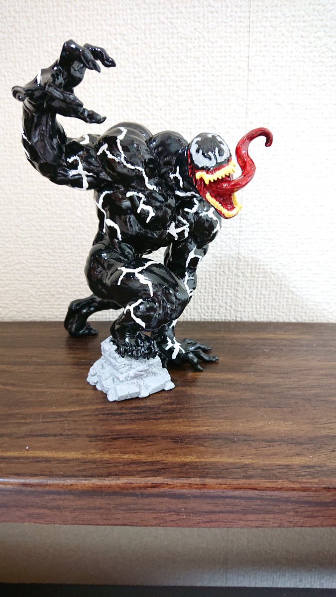 4 15 台座の塗装は置いといてw 出来た!!!!!!! 初めてのフィギュア塗装リペイント 実写風ヴェノム!!!! 初めてだからお手柔らかにね💦💦 18/12/16 23:30
