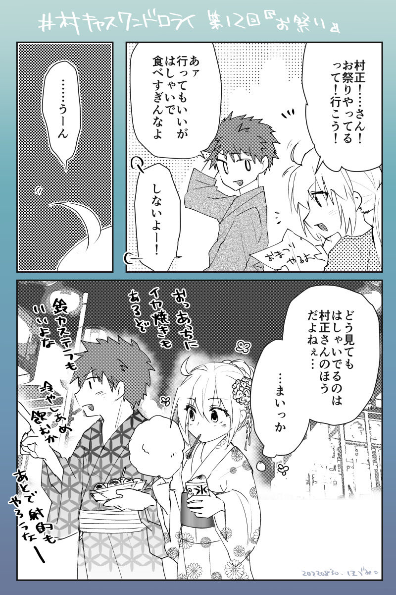 36 146 村キャスまんが。現パロっぽい。テンション上がっちゃって財布の紐がゆるゆるな村正おじいちゃんはかわいい。 #村キャスワンドロワンライ 第12回お題【お祭り】 22/08/30 14:01