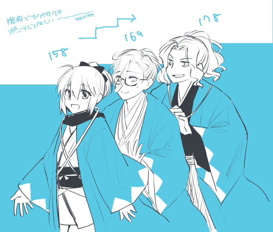 66 289 沖田さん山南さんはじめちゃんの身長が階段でかわいかったので描いたついでにポニテにしてもらいたかった絵(よくばりセット) 22/12/09 00:10