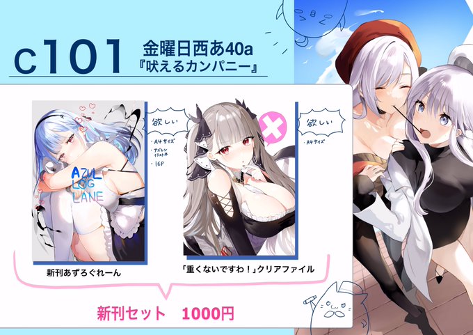 お久しぶりです 宣伝遅れてすみません! あなたのサークル「吠えるカンパニー」は、コミックマーケット101で「金曜日西地区 "あ " 40a」に配置されました! 冬コミに参加します アズレンで出ます頑張ります