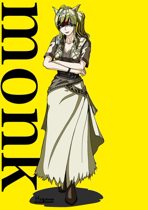 あと背景黄色にしたので再掲 (; 3 )~♪ #FF14 #イラスト #ミコッテ #モンク