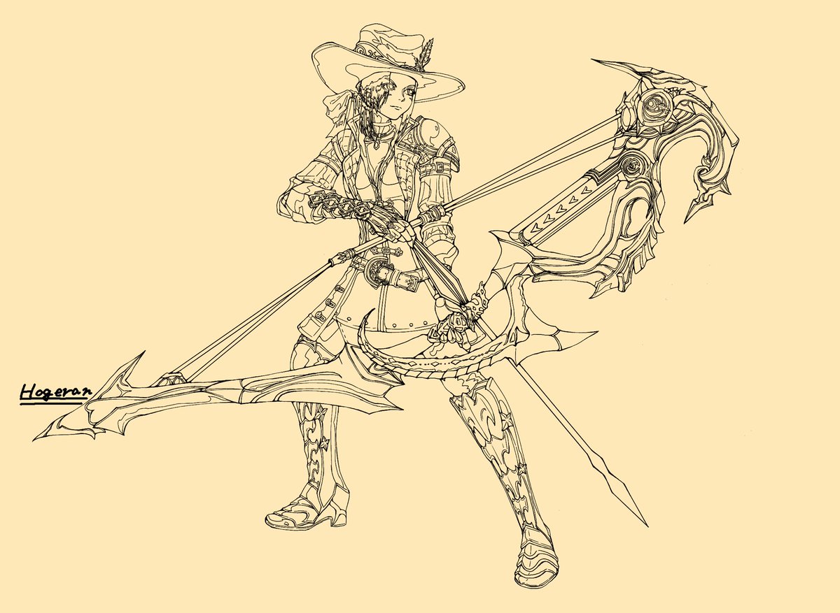 弓がとてもいい出来だったので!!! さて色塗りだ! #イラスト #弓 #FF14