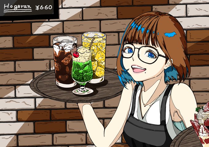 5 44 クリームソーダとイチゴバフェ、可愛い店員さん。 死んでもいいな?☺️ #イラスト #創作イラスト #カフェ 21/07/25 02:46