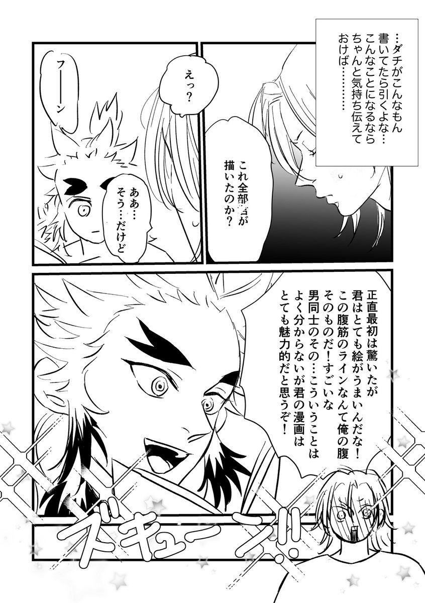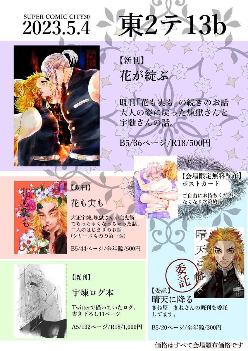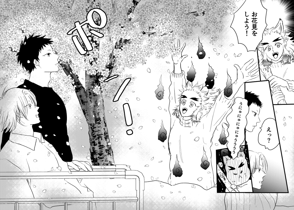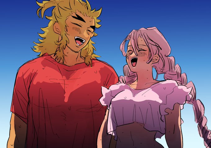 143 290 #ひらいて赤ブー 朝描いてたアレをせっかくなので、滑り込みでひらブーに☺️ 👹滅の🗡️ 宇💎天🐡×煉🔥杏🍠郎オンリー開催お願いします。 rtご協力お願いいたします。(7日まで集計対象) 宇煉① 23/05/07 00:24