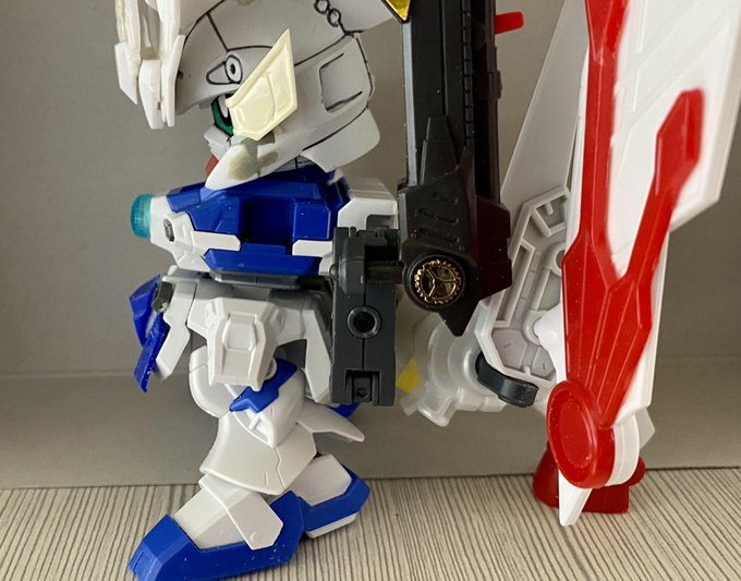 8 43 四代目の武神剣作るのめんどいなー代用ないかなーって探してたら曹操ウイングの見つけて持たせてみた ………これでいいじゃん! あと鞘をマウント出来るようにした 変わり映えない製作画像ですみませ #俺SD作ってるぜ 22/11/12 14:39