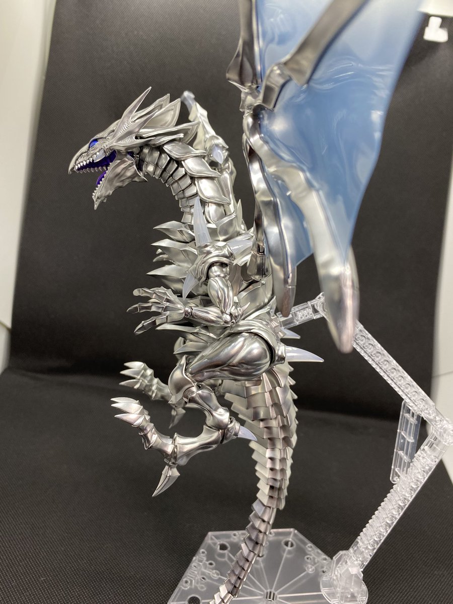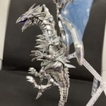 ブルーアイズホワイトドラゴン完成! 元キットにEXブラックを下地にプレミアムミラークロームを吹いてコテッコテのメタリック調に 本当はもっと白銀なんだろうけど俺の子供の頃からのイメージはまさにこのメタ感なので思ってた以上に感動してます キットの出来が完璧なので素組でもめちゃ映えます!