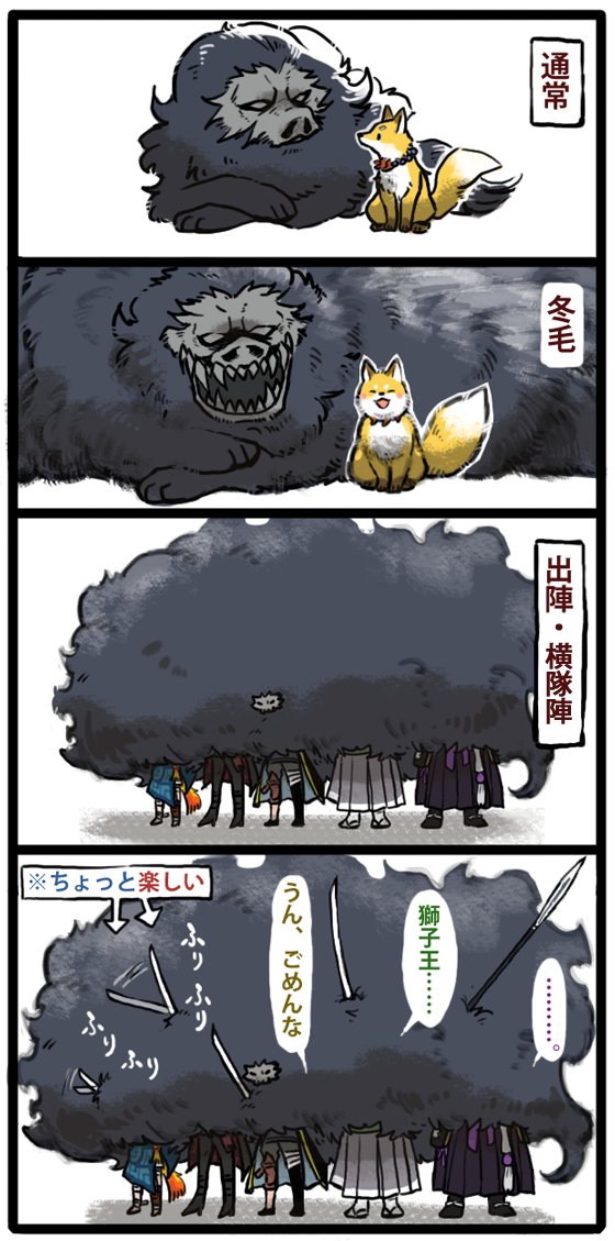 4827 16.8K 獅子王さんの極姿モコモコしてたので昔描いたモコモコ鵺漫画を再掲。 20/10/06 20:04