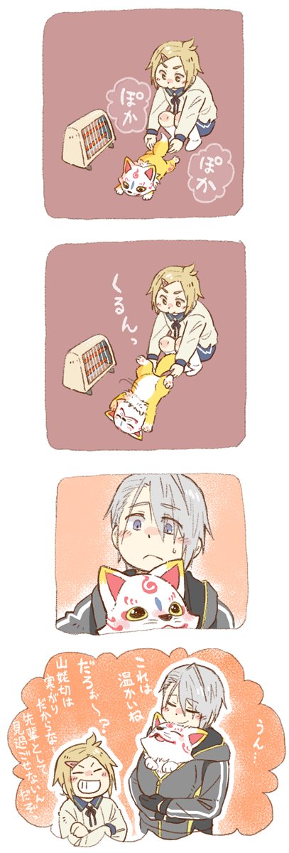 284 1043 【包丁藤四郎】で描かせていただきました!(長義さんもいるけど気にしないで下さい) 本丸の先輩として寒さに震える後輩を助ける包丁くん。 #男士とこんちゃん企画 20/11/08 23:05