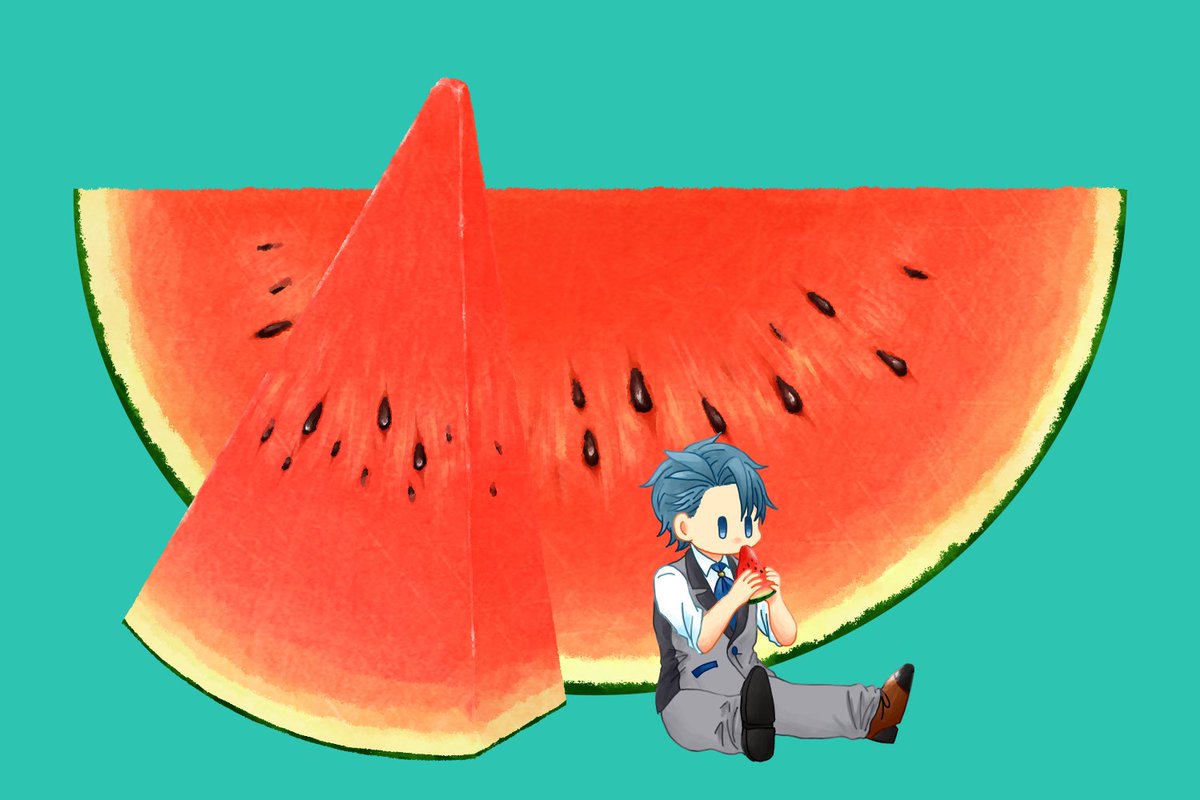 夏っぽい食べものとミニぐうじさん🍧🍨🍉 #じんぐーあーと
