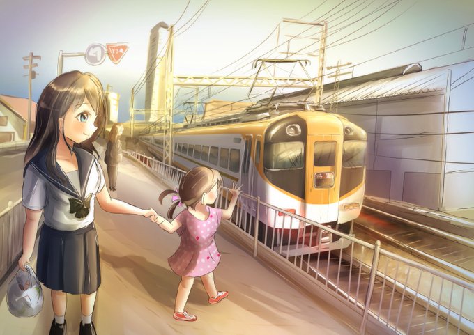 京阪電車、びわ湖浜大津に到着する石山ともかさんの運転する電車。そんないつもの日常 #絵描きさんと繋がりたい #イラスト好きさんと繋がりたい
