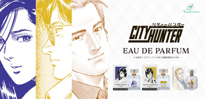 #シティーハンター 香水第3弾✨ ミック・エンジェル、槇村秀幸、野上冴子をイメージしたオードパルファムの発売が決定💕 本日より中野ブロードウェイの直営店「FAIRLYTAIL」にてサンプルをお試しいただけます! 公式サイト・Amazonにて予約受付中です。 🔽 hojo-tsukasa.com/cat-b/1107.html