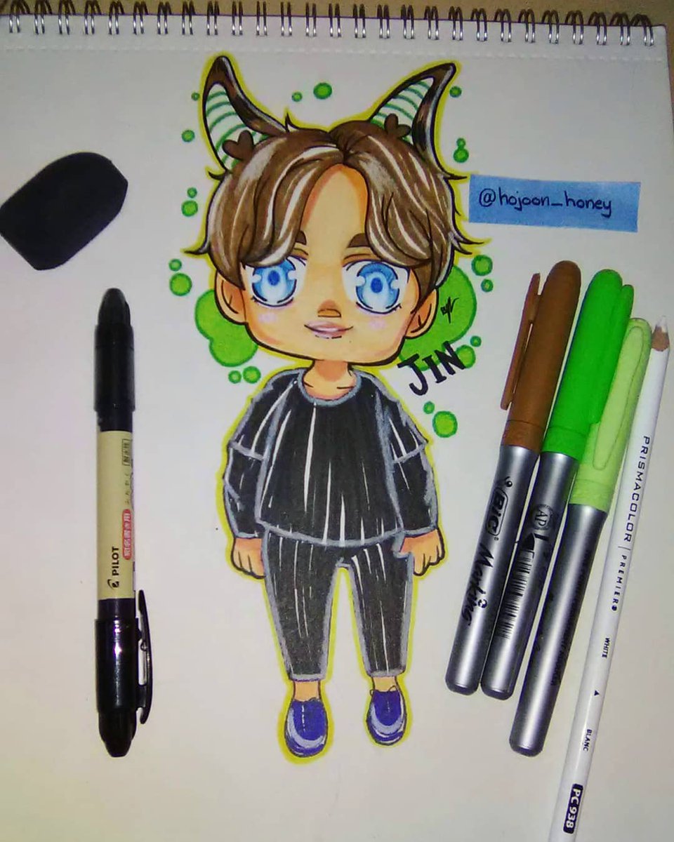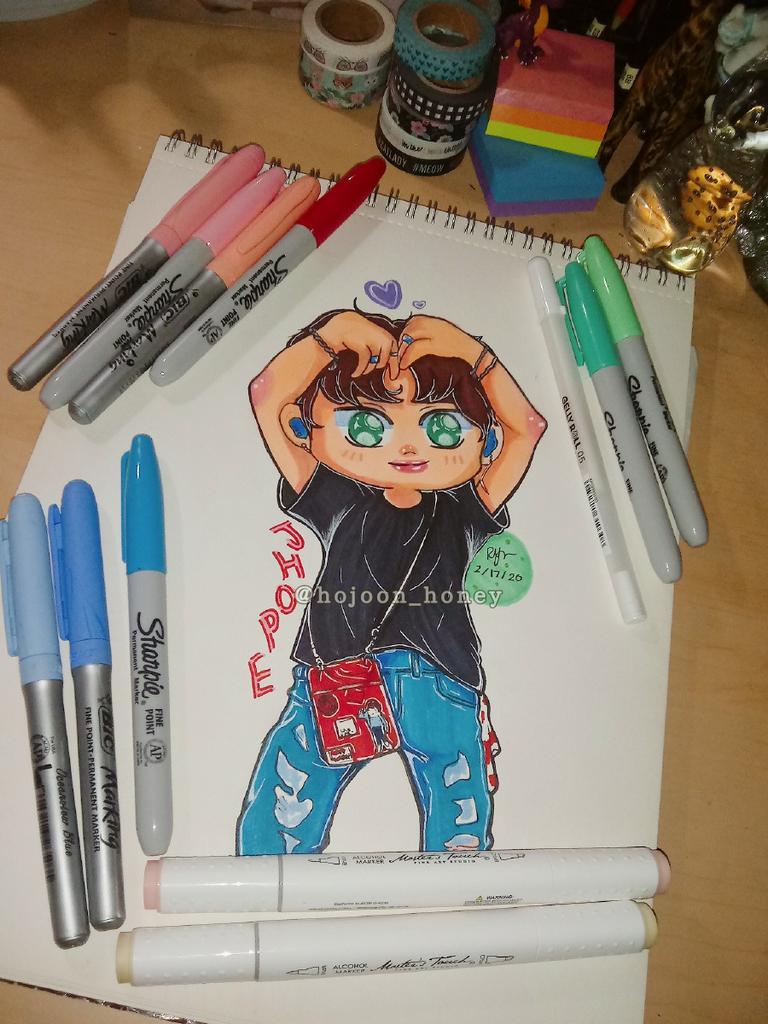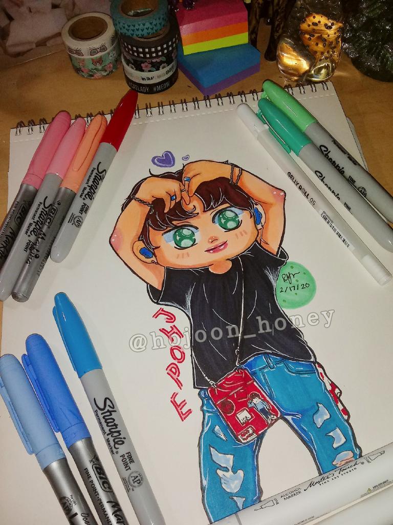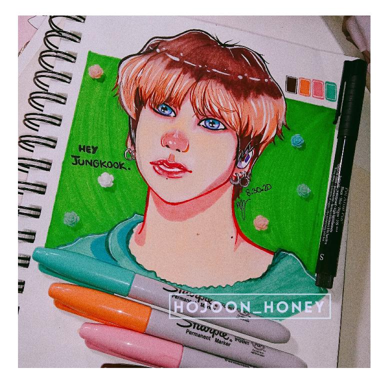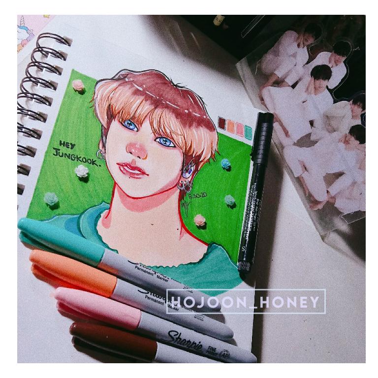 Late birthday fanart of #JHOPE Materials Used ; ➷ BIC Markers ➷ SHARPIES ➷ White Gel Pen ➷ Master Touch Markers (2) ➷ Faber Castell Pen ➷ Graphite Pencils and Eraser #kpopfanart #BTS #BTSfanart #junghoseok #btsjhope