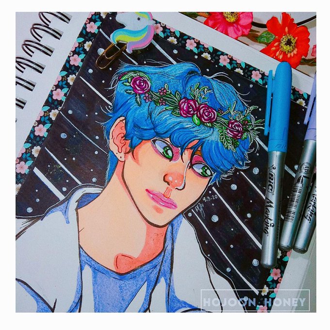 [ hello, it's a flower prince, mister kim taehyung 🌼 ] #bts #btsfanart #btstaehyung #taehyungfanart