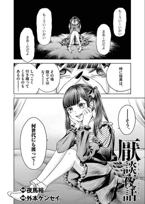 サンデーうぇぶりにて『厭談夜話』第9話「もういいかい」(前編)が更新されてます! 原作 夜馬裕/漫画 外本ケンセイ 今回のお話は夜馬裕さんが怪談師として一番最初に語った怪談であり、現在進行形の怪異にまつわるお話です。是非よろしくお願いします! #厭談夜話 #夜馬裕 twitter.com/yamayu_ggh/sta…