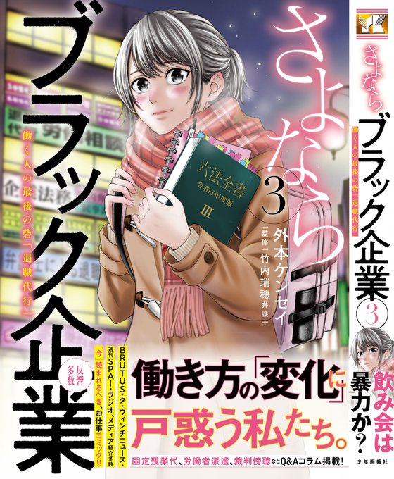 本日11月22日(月)退職代行がテーマの漫画『さよならブラック企業(監修 竹内瑞穂弁護士)』第③巻発売です🌸パワハラ、過重労働等、リストラ等、悩みを抱えた人を救う為に闘う法律事務所の奮闘記…そして一人の女性主人公の成長物語です。是非よろしくお願いします🙌✨ #さよならブラック企業