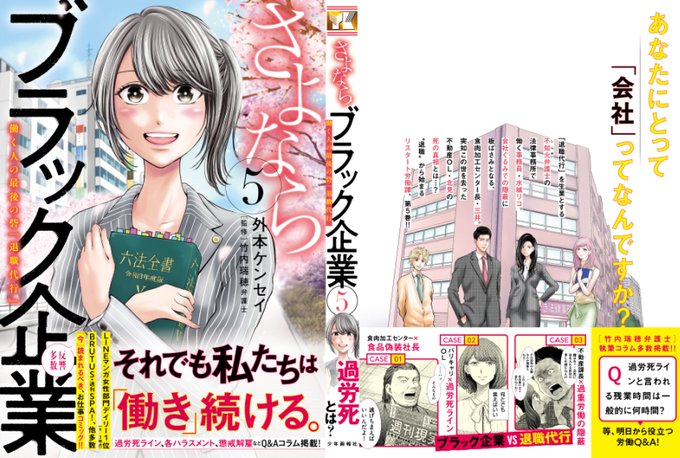 退職代行がテーマの漫画『さよならブラック企業(監修 竹内瑞穂弁護士)』第⑤巻が7月25日(月)発売です🌸パワハラ、過重労働等、悩みを抱えた人を救う為に闘う法律事務所の弁護士たちの奮闘記…そして一人の女性主人公の成長物語です。是非よろしくお願いします🙇 #さよならブラック企業