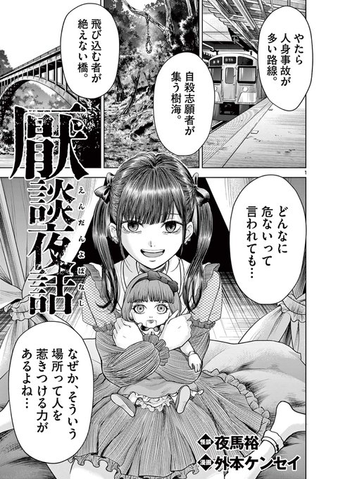 サンデーうぇぶりにて『厭談夜話』「第4談 幽霊に助けられた男」更新されてます^^ある展望台で清水さんの身に実際に起きた恐怖体験に基づくお話です。 《厭談夜話 (えんだんよばなし)》 怪談・夜馬裕/漫画・外本ケンセイ #厭談夜話 ↓こちらで無料掲載中です sunday-webry.com/episode/485600…