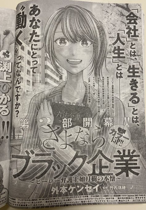 ヤングキング14号より巻頭カラーで『さよならブラック企業』第2部として連載再開します🌸新米弁護士「水城リコ」と労働専門弁護士「如月樹」が現代で働く悩める人を救っていく法律事務所の奮闘記⚖️更にテーマを広げた本格リーガルドラマになってるので是非よろしくお願いします✨#さよならブラック企業