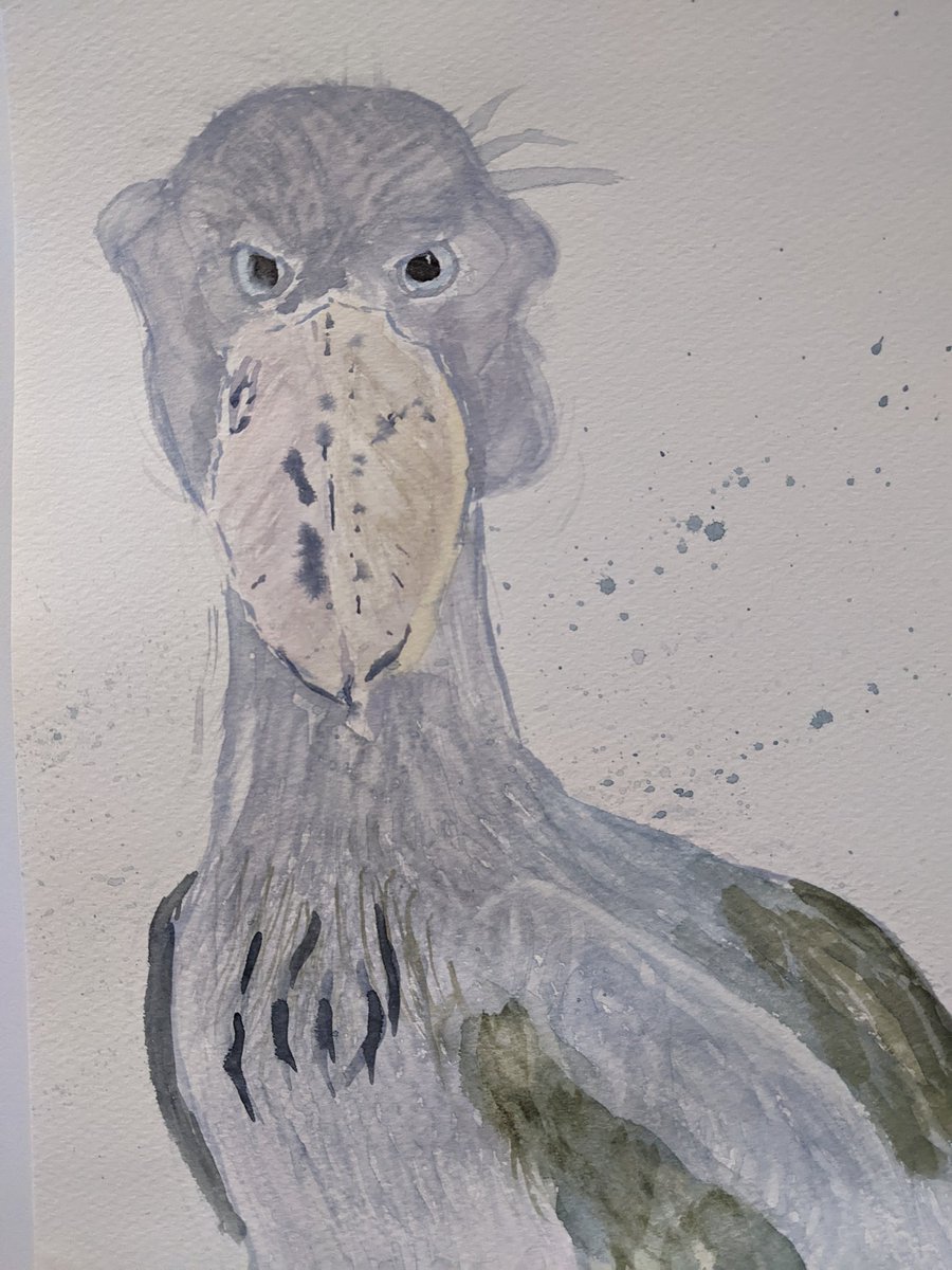 0 2 ハシビロコウ 水彩難しいけど楽しく描けた #水彩画 #透明水彩 22/09/04 16:19