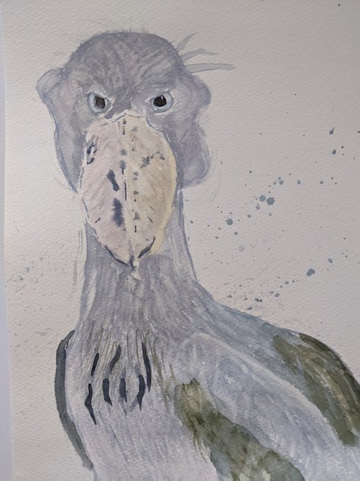 ハシビロコウ 水彩難しいけど楽しく描けた #水彩画 #透明水彩