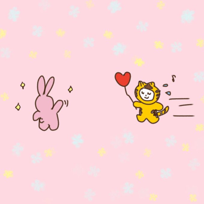 うさぎさ〜ん🐰❤️ 待っててね〜🎈🐯🎈🍀💕✨ #ほっこり #トラ #寅 #寅年 #うさぎ #イラスト