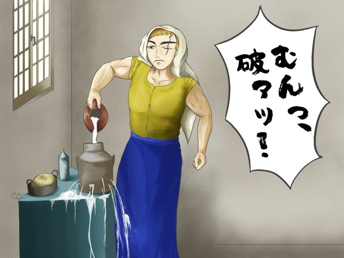 ビッグウェーブに乗るしか無いと思ったので「牛乳を注ぐドライゼ」さん描きました💪 #1014R_FA