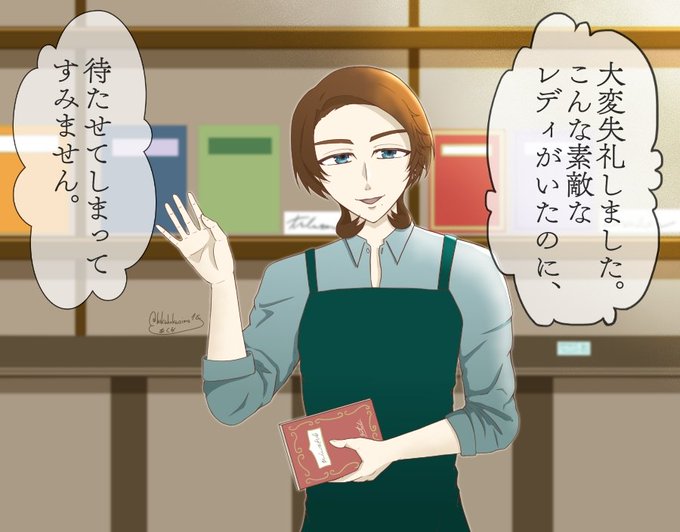 4 20 ブラカフェ☕イベストネタ 今回のイベストで、好きだったとこのグラース描きました! 髪の毛ピシッと分けて働いてたらいいなっていう願望と服は捏造 本屋組もいつか働いてるとこ詳しく見せてほしい!🙏 #1014R_FA 23/02/06 22:32