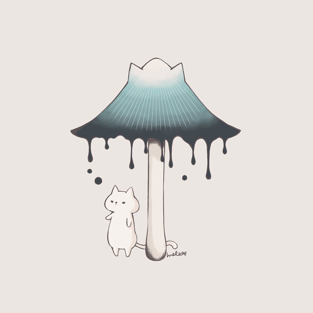 食べられないきのこシリーズ、ヒトヨタケ🍄 ヒトヨタケはとても神秘的で面白いなぁとモチーフに選びました。溶けていくところを雨に見立てて描きました☔️ #イラスト #オリジナルイラスト #illustration #創作