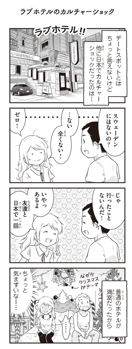 日本でカルチャーショックだったことの一つにラブホテル🏩があります。 実は一度だけ行ったことがあるのです♥ 『北欧女子オーサ、日本で恋をする。』 コミックエッセイ劇場で連載です! comic-essay.com/read/749/entry…