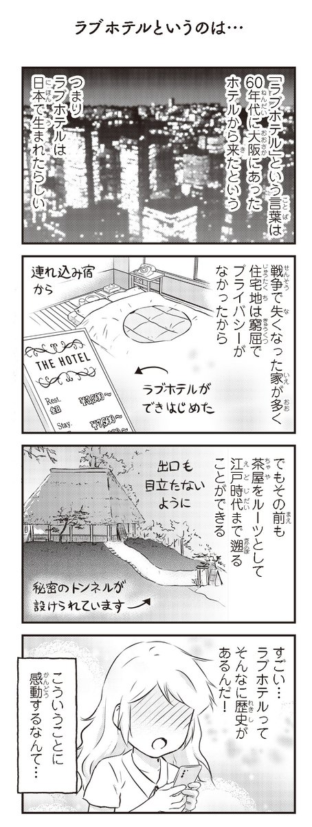 ラブホテルの歴史を調べてみました。日本の戦争の歴史と関係があるみたいです。 『北欧女子オーサ、日本で恋をする。』第16話「ラブホテルというのは」: comic-essay.com/read/749/entry…