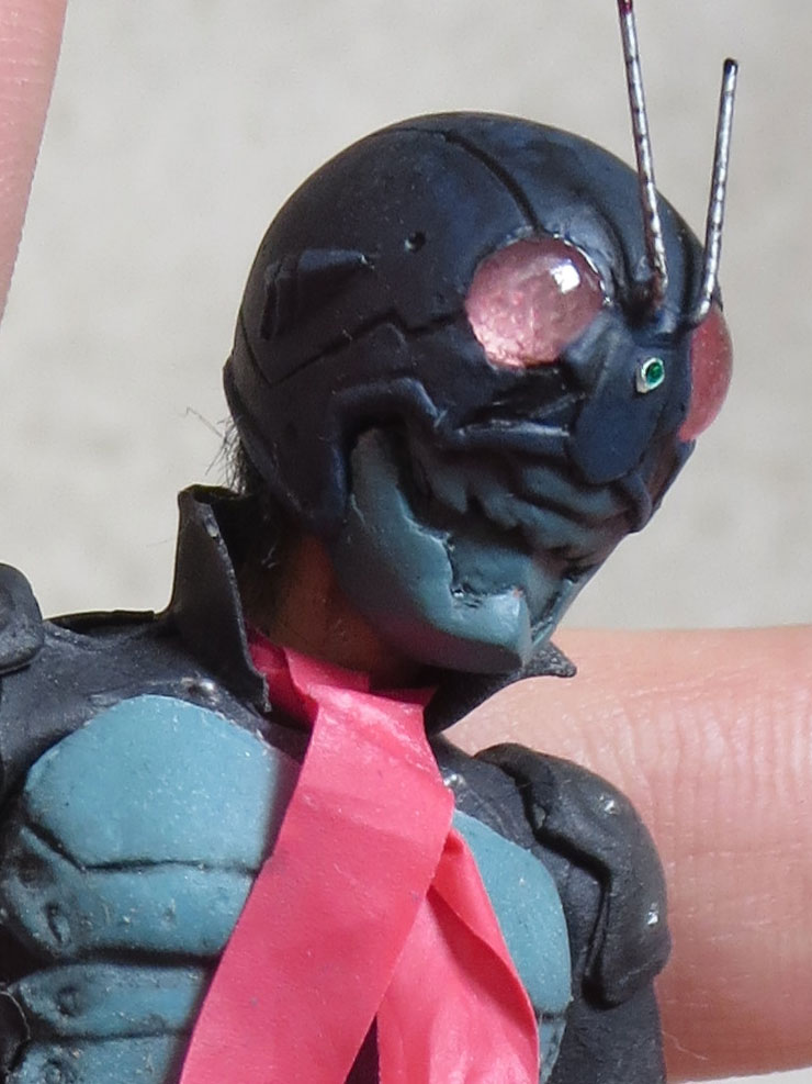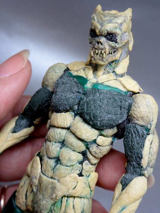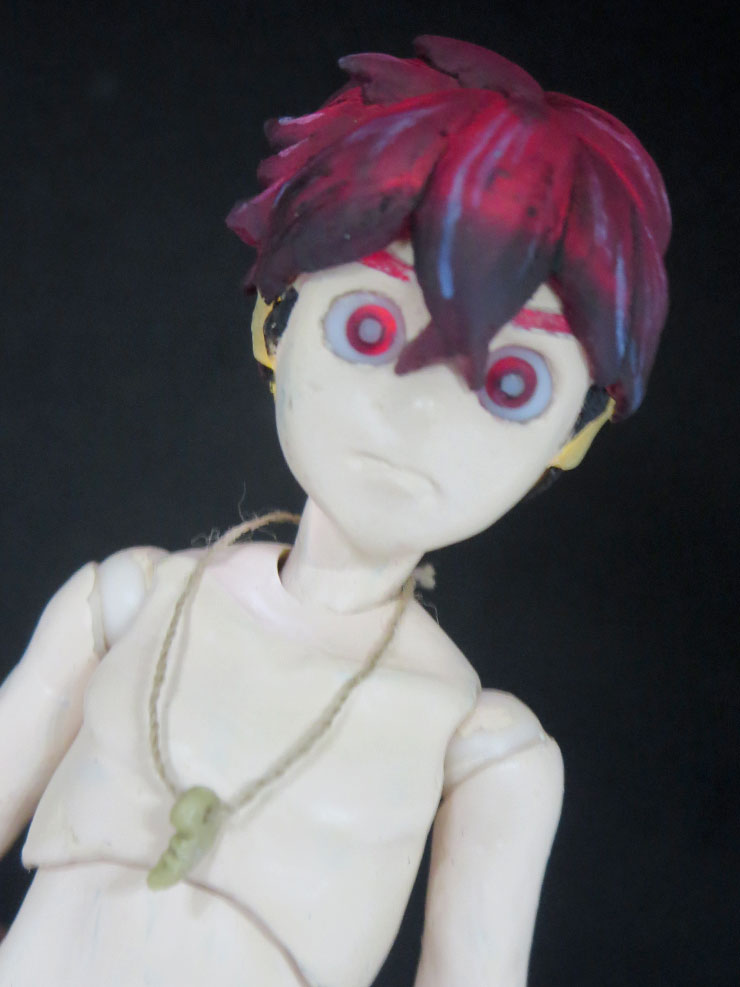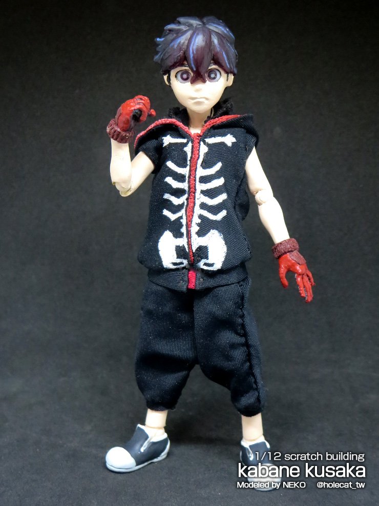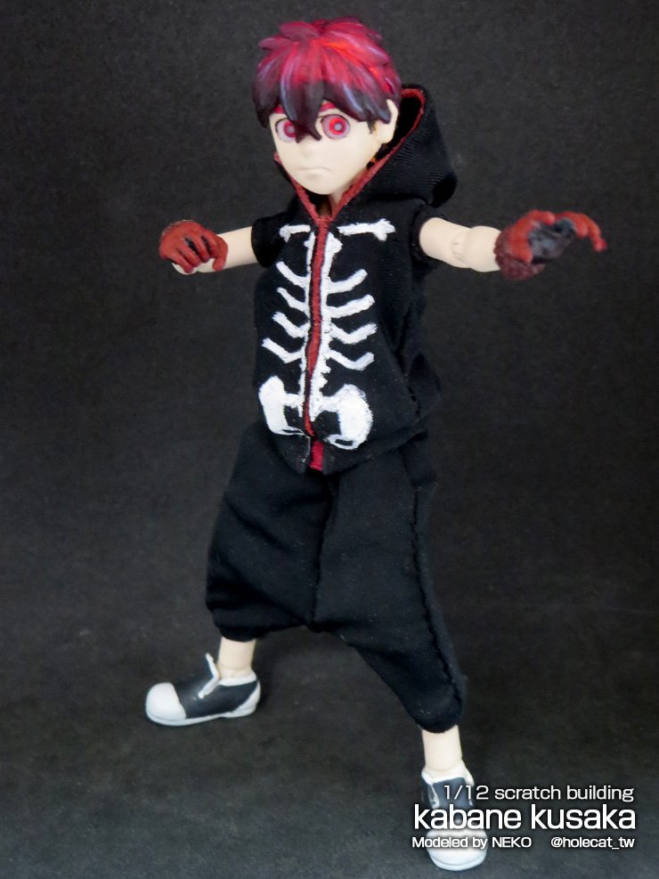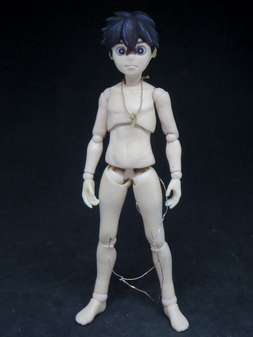 夏羽くん 自作可動フィギュアの 続きをチマチマ…φ(*'д'* )フフフーン♪ クリアレジンで造った頭髪を ギリギリ下地が 見えなく位まで塗装 電飾スイッチオンで 覚醒モード☆(*>∇<)ノ #怪物事変ファンアート