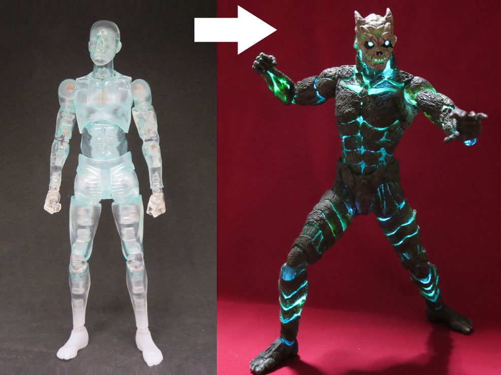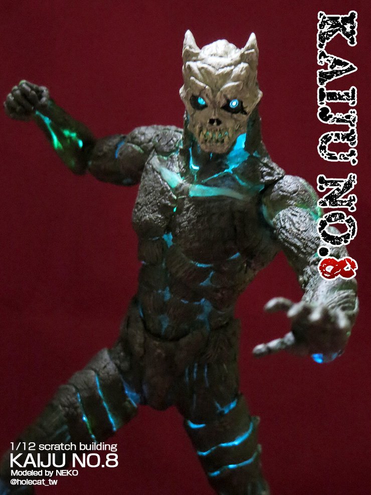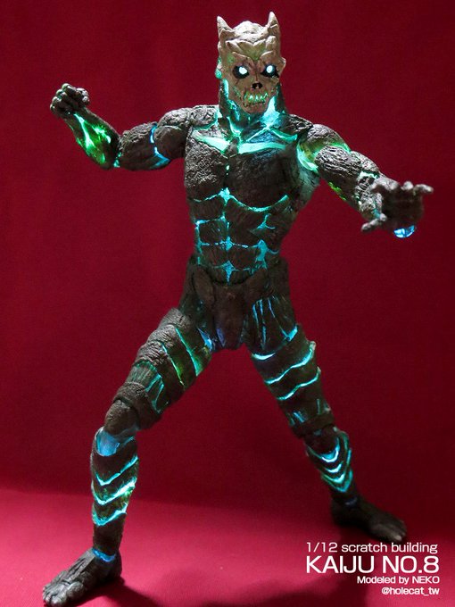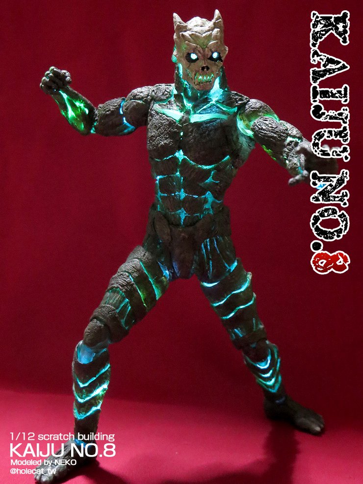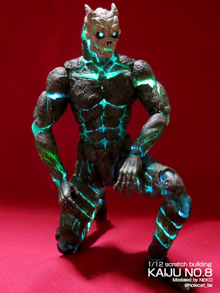 #なんでそのギミック仕込もうと思ったのか選手権 1/12 怪獣8号 市販のクリアカラー可動素体に チップLEDと 電池ボックスを入れて全身発光☆ 「どうせなら 光った方が雰囲気が出るのでは」 と思ったから (*´∇`)bデス