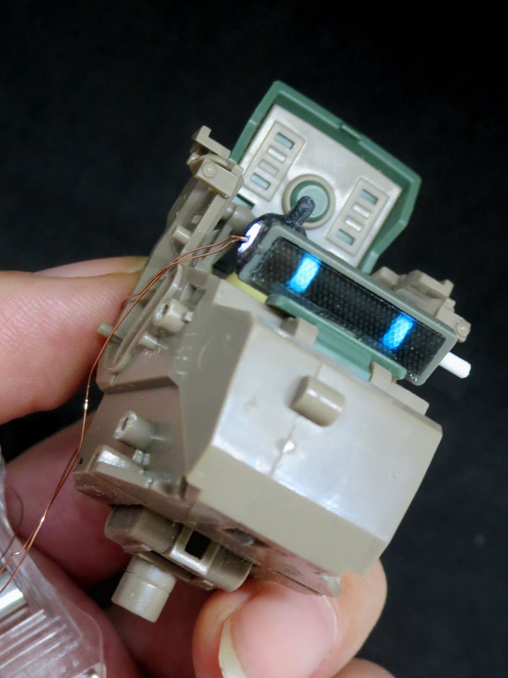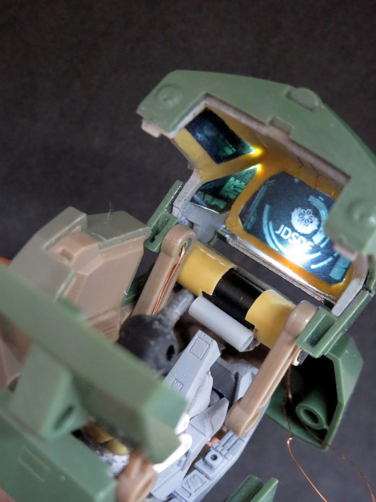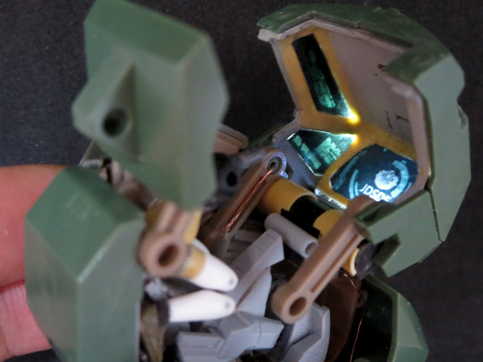 #なっフェス4開催中 35なっちん 頭部ハッチ裏側の モニター部分に電飾してみる …φ(*'д'* )チーマチマ☆ 遮光も表面処理もまだだけど ほぼほぼイメージ通りに なったにょでは(*ˊᵕˋ*)ンフータノシイ♪