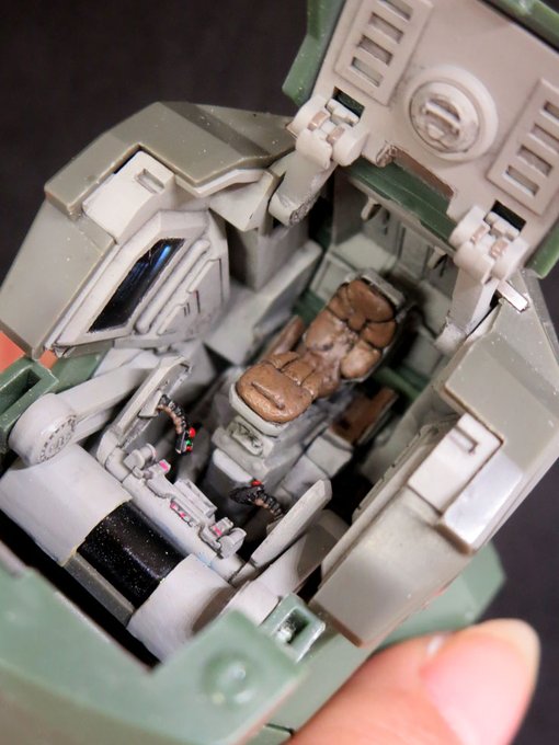 #なんでそのギミック仕込もうと思ったのか選手権 1/35クーガーⅠ型 コックピット開閉 可動ボーダー搭乗 IFF、コンソール、ブースター発光 マウンタースライド…etc 「ギミック満載の方が楽しいから」 ( ・∀・)デッス