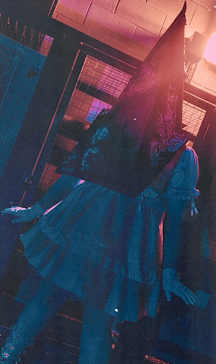 James’ guilt do be lookin cute tho 👀🎀📐💕 Pyramid Head maid might be my fav cosplay I’ve worn… 📸 @Dream_Oni_ #silenthill #pyramidhead #dbd #horrorcosplay #cosplay
