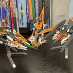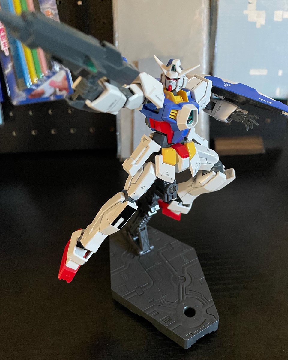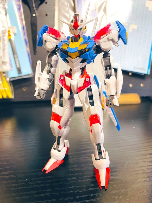 #はのーと #VTuber専用機 天川はの専用機、ネプテイトガンダムhano ver.1.0 完成! 光沢のクリアコートで仕上げました 1枚目の画像の衣装を元に各部に青とピンクで塗装しました! (左右の手首のバンドみたいなのつけてるから手の甲を塗装したり履いてるヒールの色に合わせて塗装した)
